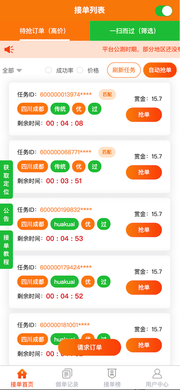 類似“碼幫平臺/FZ輔助/碼力平臺/閃電接單/蜻蜓輔助/雛菊輔助”,第三方微信輔助注冊任務(wù)管理平臺——“蜜蜂”任務(wù)平臺管理系統(tǒng),幫助有大量微信注冊需求的商家和想要0元投入月入過萬的兼職人員搭建連通的橋梁。系統(tǒng)由用戶端H5/APP、商家端H5/APP、地推商戶端H5、商家端PC、平臺端PC架構(gòu)而成,支持用戶隨時提現(xiàn),支付寶實時到賬,商家端一鍵掃碼下單,方便快捷;系統(tǒng)支撐商家每天10萬+的訂單下發(fā)和用戶隨時隨地?fù)寙危鰡危嵢蚪穑岈F(xiàn)等更多功能。。。